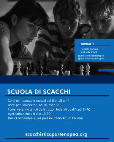 Benvenuti alla Scuola di Scacchi della Scacchistica Partenopea. Dove le menti brillanti si incontrano.